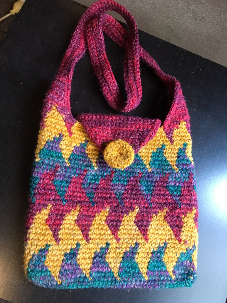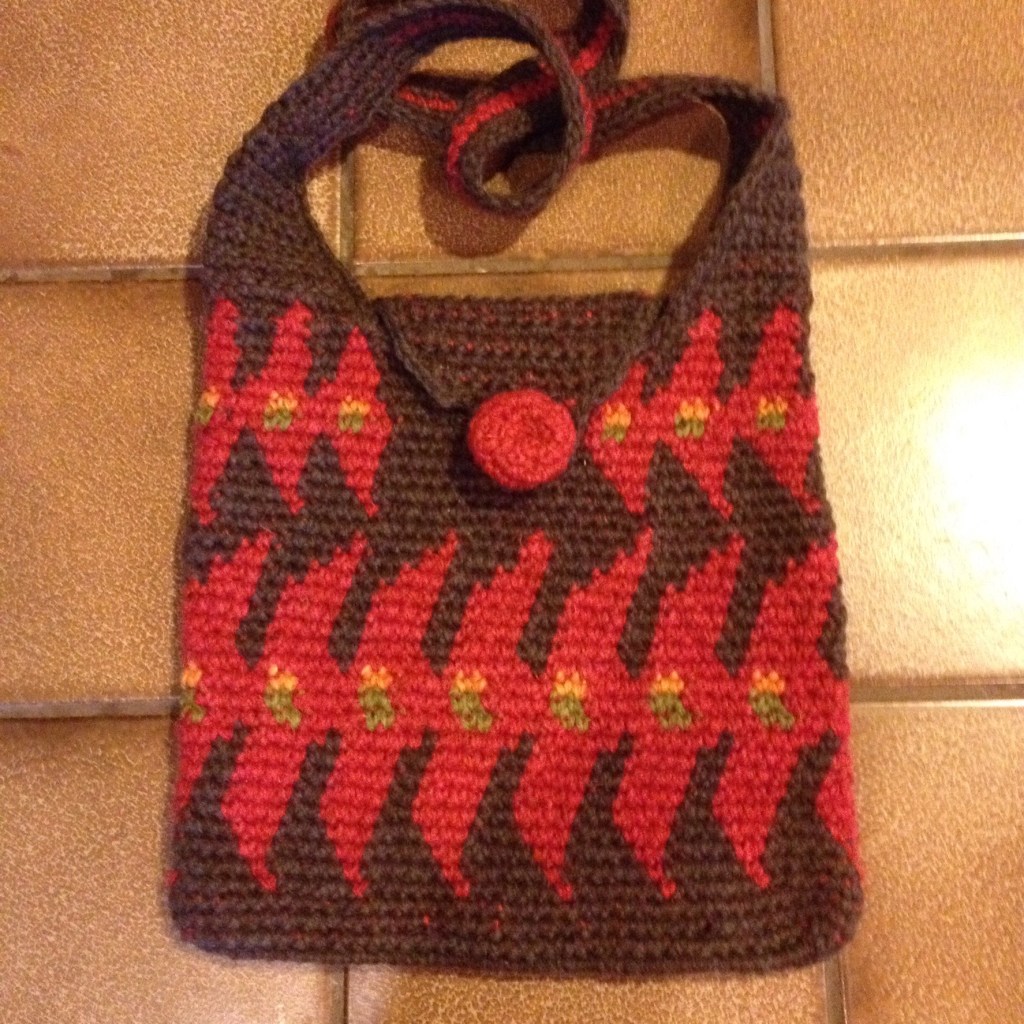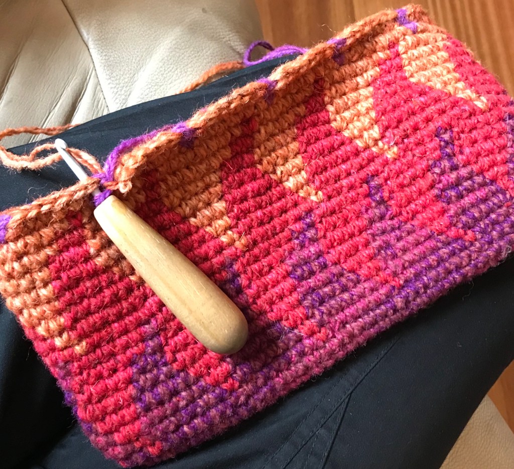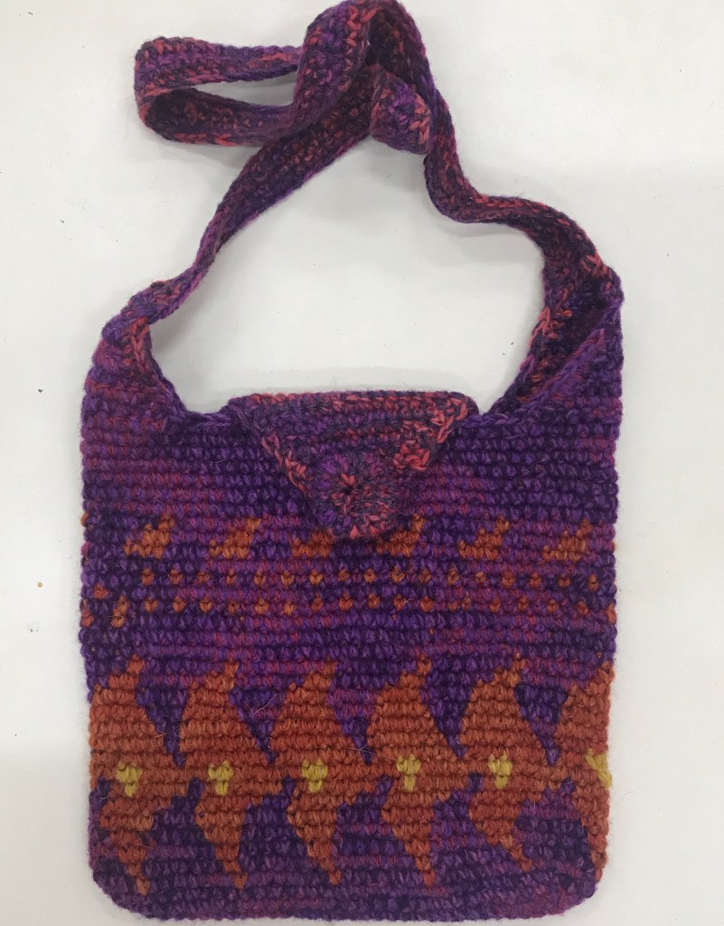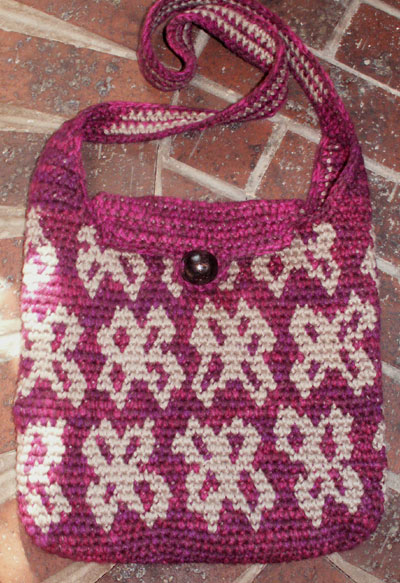 The term “tapestry crochet” was popularized by Dr. Carol Ventura, who has written several books about the technique. Her tapestry crochet website is also a valuable source of information. Carol has been an inspiration to me when I started making bags.