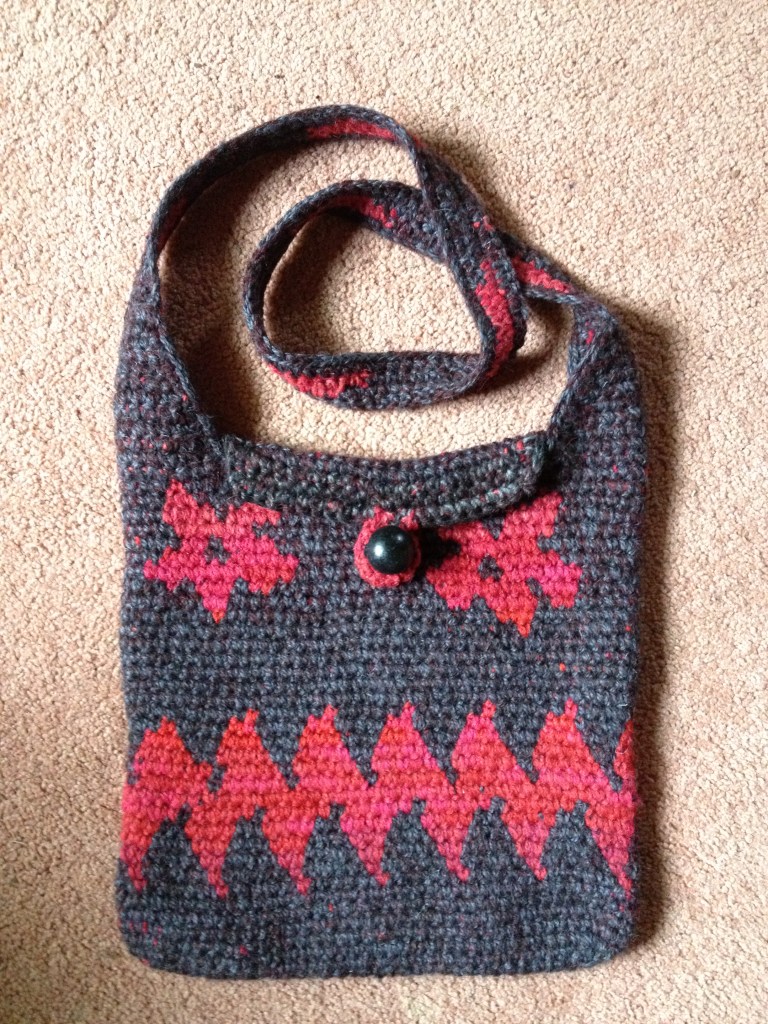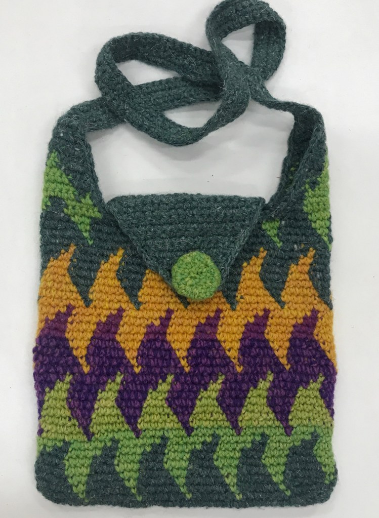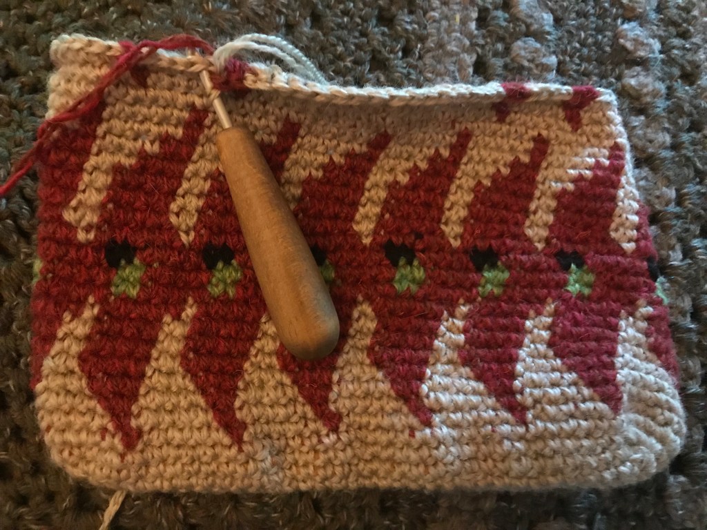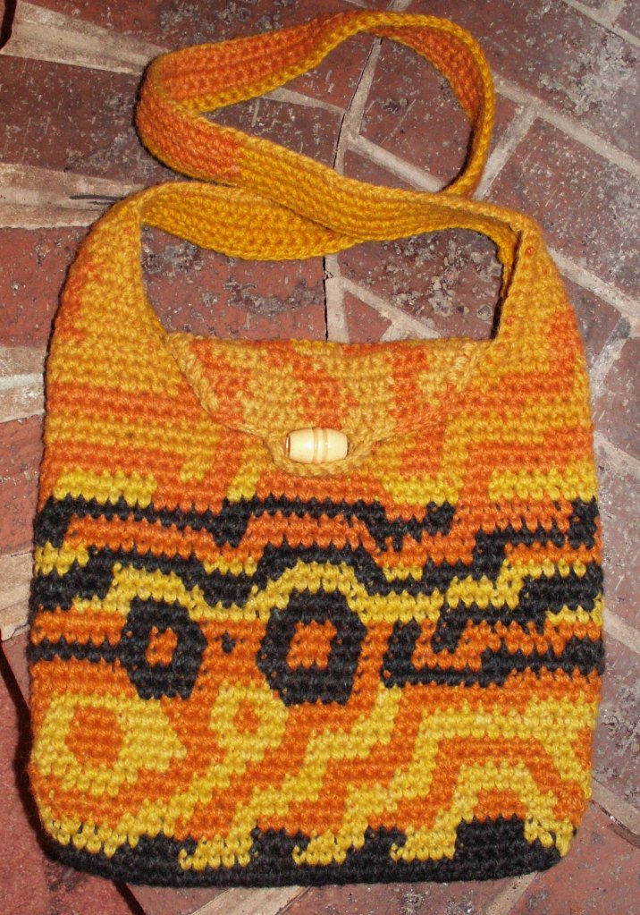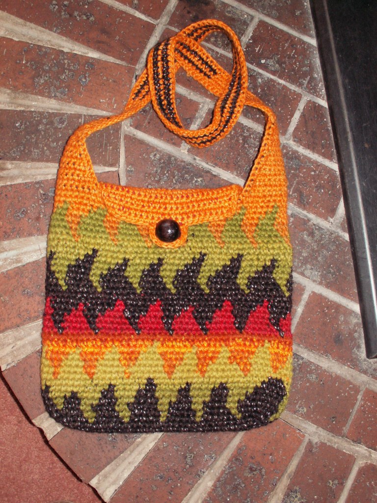 The term “tapestry crochet” was popularized by Dr. Carol Ventura, who has written several books about the technique. Her tapestry crochet website is also a valuable source of information. Carol has been an inspiration to me when I started making bags.